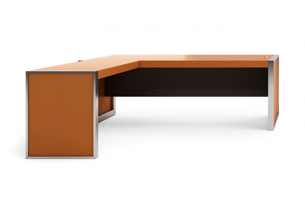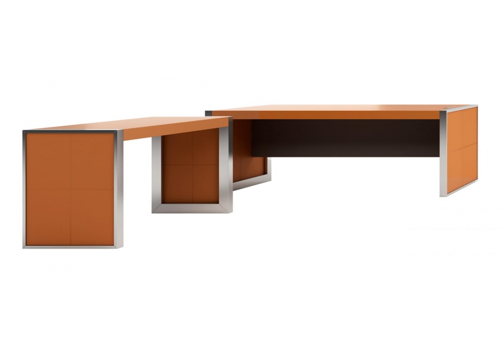 Strato designed by Danilo Bianchi for Enrico Pellizzoni is a desk with legs in painted aluminum and top covered in leather. Available in different models.