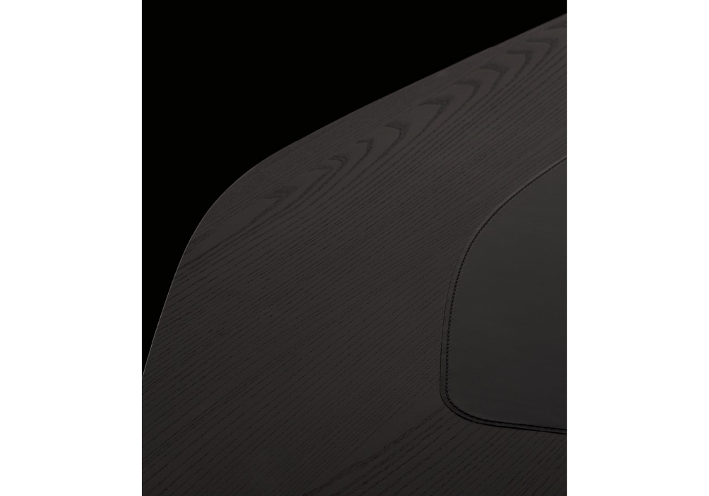 Adrien designed for Jean Marie Massaud for Poliform is a home desk made with a black elm stained solid wood structure, matt and glossy lacquered metal in colours or matt and glossy painted metal in light sheer or dark sheer. Top in black elm. The top is also available with a leather desk pad in colours. Adjustable chest of drawers in black elm, optional.
