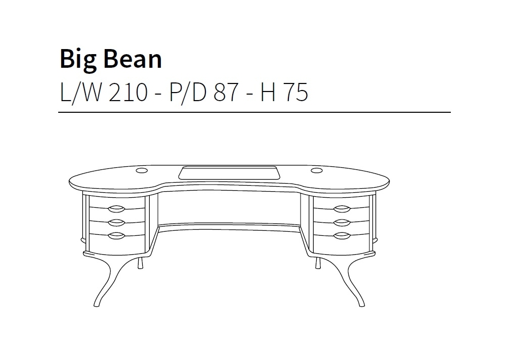 Big Bean by Ceccotti Collezioni is a writing desk is manufactured in solid American cherry-wood or American walnut. Bean reminds desks French of the eighteenth century with its soft shape that looks like a big bean. The seat fits perfectly into the notch underneath floor. Drawers rounded, thin legs like a secretaire and well hidden, complete the solid composition of the refined desk.