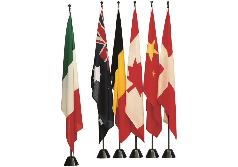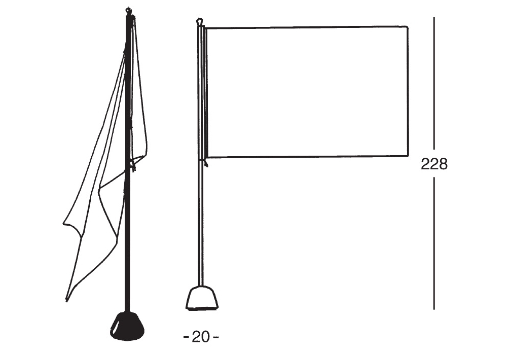 515 Servob Bandiera diseñado por Achille & Pier Giacomo Castiglioni para Zanotta es un portabandera. Base en polipropileno negro. Varilla de soporte en acero pintado, color negro para exterior. Bandera en lana de poliéster. Colores, símbolos y tamaños de especificaciones. Tamaño de la tela 100 x 150 cm. La bandera suiza mide 100 x 100 cm. Los símbolos de las banderas de Estados Unidos y del Consejo de Europa están bordados.