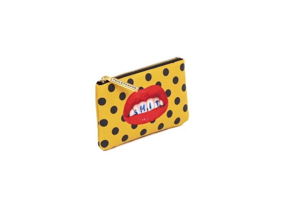 Shit diseñado por Toiletpaper Magazine para Seletti es un estuche con cremallera en poliéster recubierto de PU en color amarillo y negro con estampado de colores.