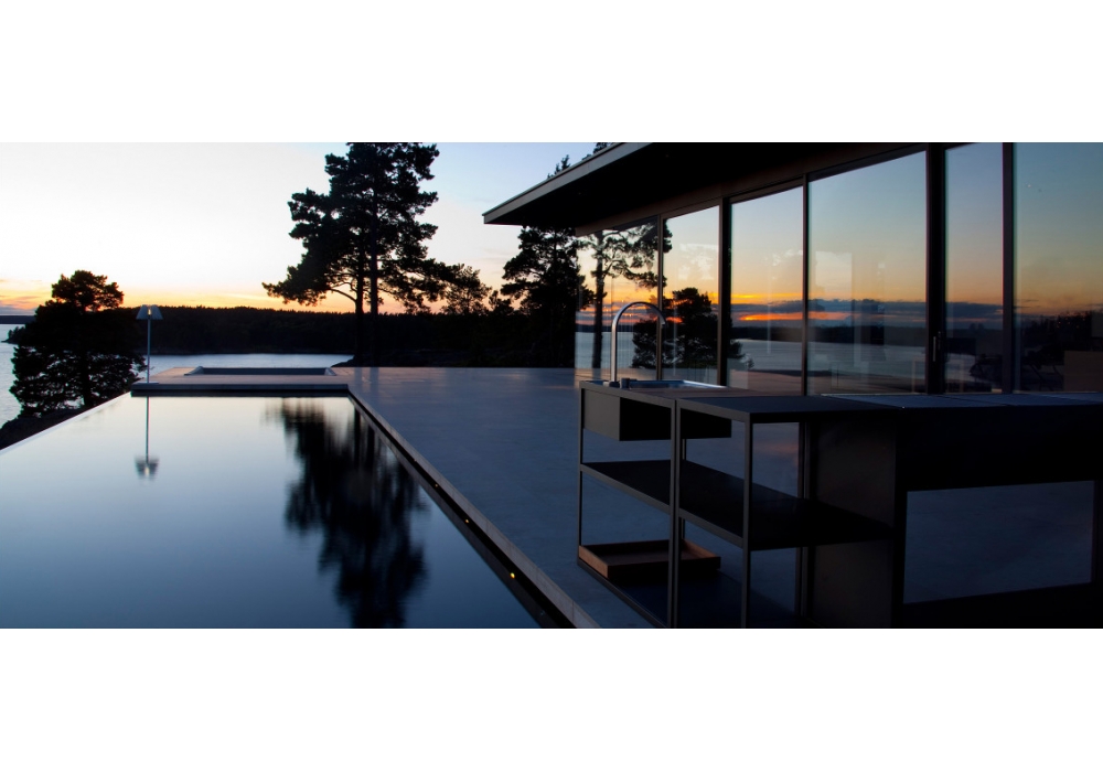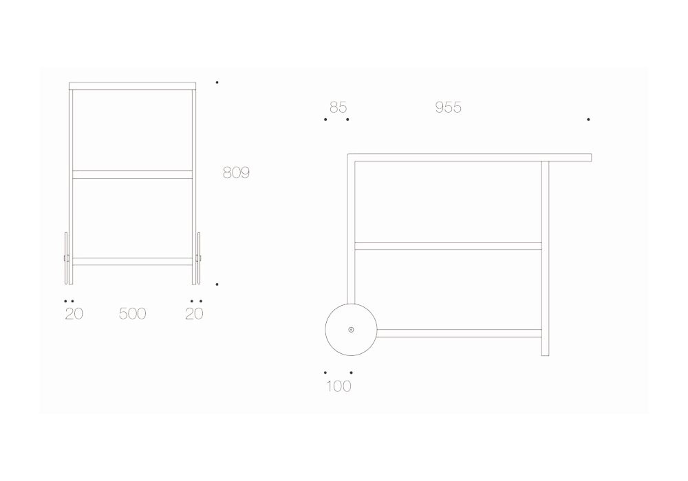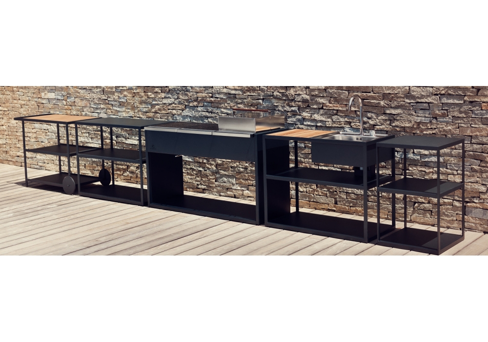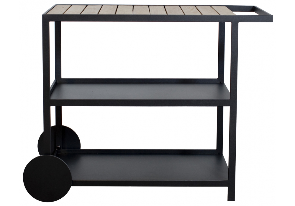 Garden diseñado por Broberg & Ridderstråle para Röshults es un carro con estructura en acero inoxidable y tapa en teca.