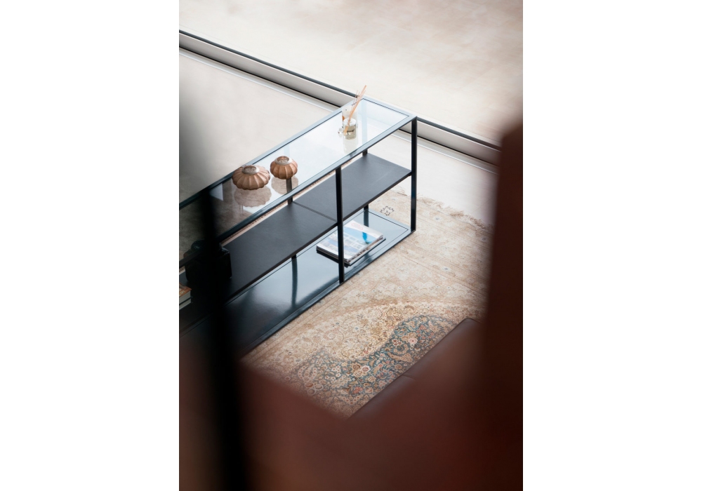 Monaco diseñado por Broberg & Ridderstråle para Röshults es un aparador con estructura en acero inoxidable y balda central revestida en piel. Disponible en dos dimensiones.