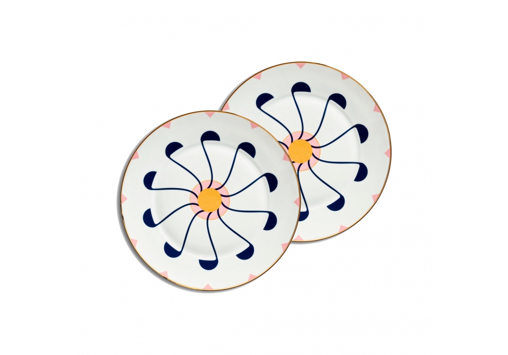 Elvas producido y firmado por Reflections Copenhagen es un plato de postre de porcelana con decoraciones variadas y extrovertidas con inspiración gráfica del Art Nouveau.