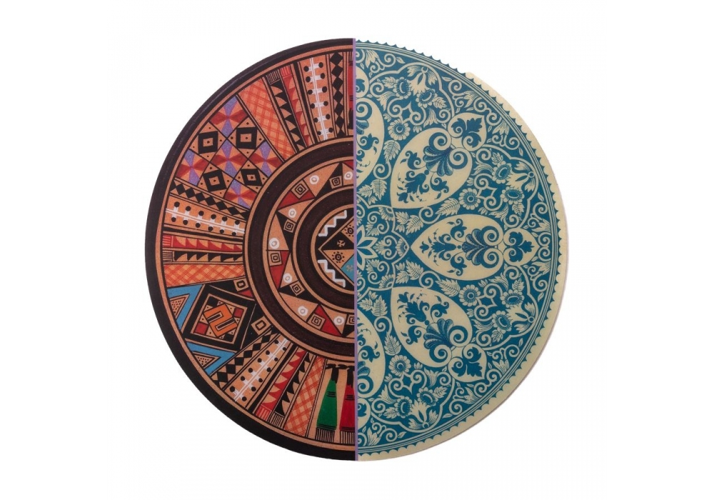 Hybrid diseñado por Ctrlzak para Seletti es un mantel individual de mesa circular realizado en corcho revestido de PVC. El híbrido está disponible en diferentes modelos.