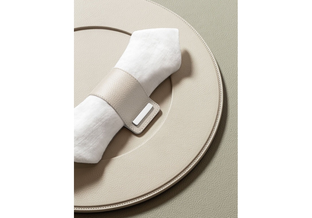 Colección Tableware diseñada por Giobagnara para Poltrona Frau es un servilletero realizado en Pelle Frau® con cierre de acero. La colección Tableware está disponible en diferentes acabados.