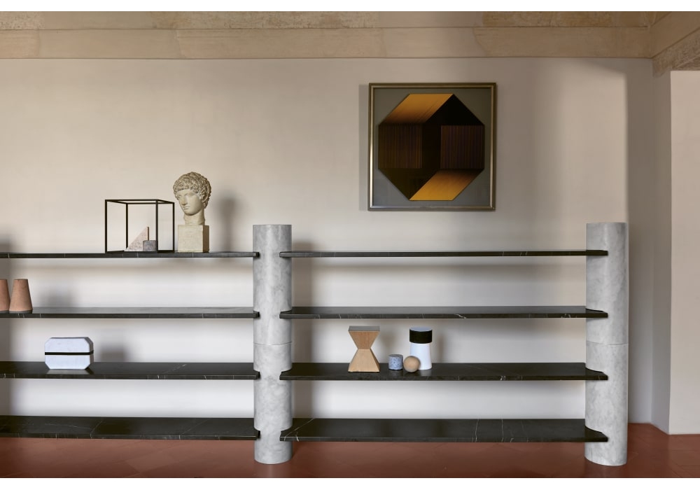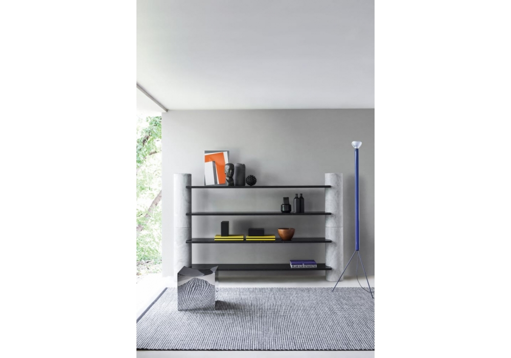 Loico diseñada por Angelo Mangiarotti para Agapecasa es una librería modular realizada en mármol en diferentes acabados. Se caracteriza por elementos portantes cilíndricos y apilables y estantes que se fijan en las juntas adecuadas. Los estantes están equipados, en la parte inferior, con tejido de fibra de carbono que tiene una función estructural y de seguridad.