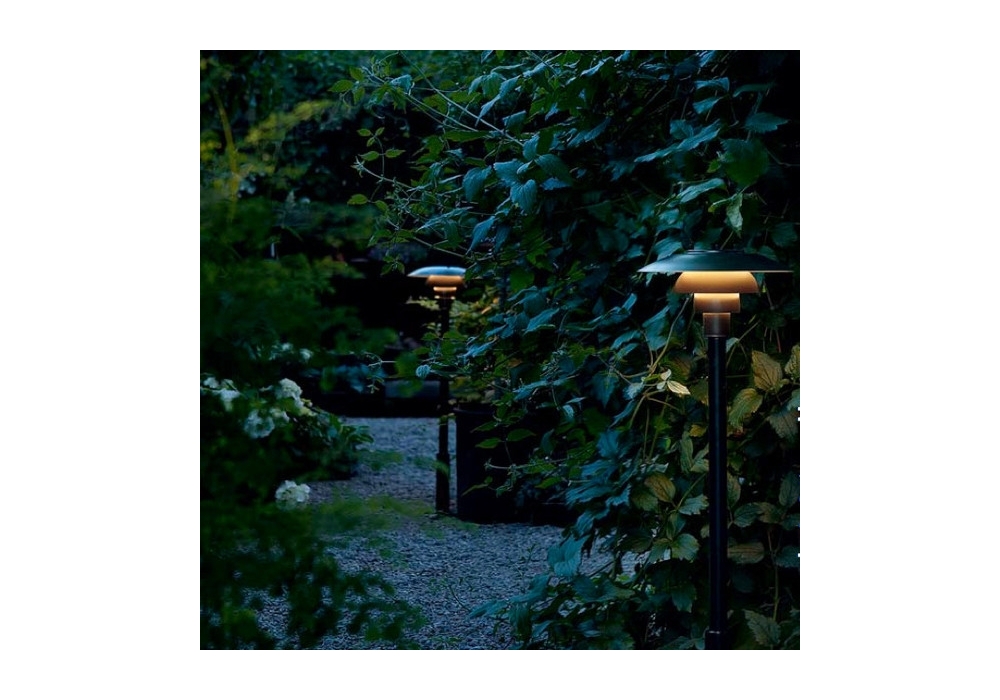PH 3-2½ diseñada por Poul Henningsen para Louis Poulsen es una lámpara de pie para exteriores completamente estructurada en acero inoxidable trefilado con recubrimiento de polvo negro. El difusor es de cristal moldeado y apantalla una fuente de luz LED o halógena con casquillo E27. PH 3-2½ se suministra con placa de anclaje al suelo.