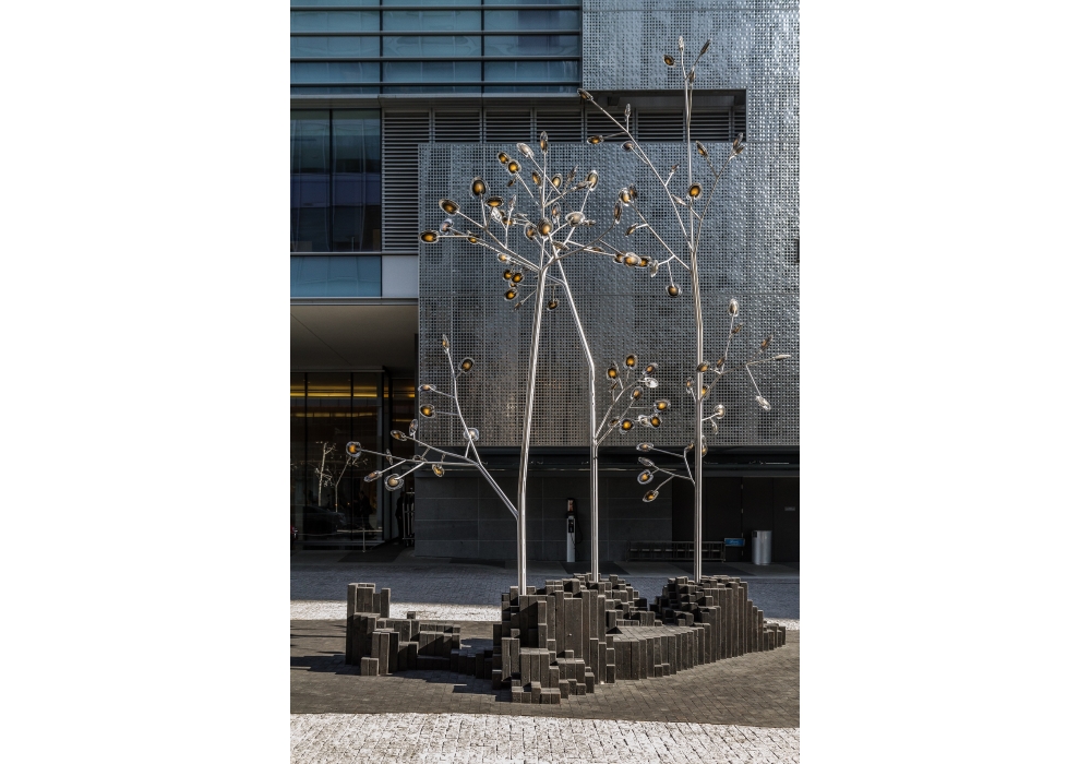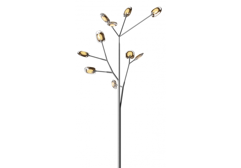 16.10 Olive de la serie 16 diseñada por Omer Arbel para Bocci es una lámpara de exterior. Una instalación de árbol con diez difusores, estructura modular en acero inoxidable sobre la que se injertan ramas que reproducen el aspecto del olivo. El tronco tiene una altura de 2 metros, 3 ramas y 10 hojas. Las hojas están disponibles en 4 acabados diferentes.