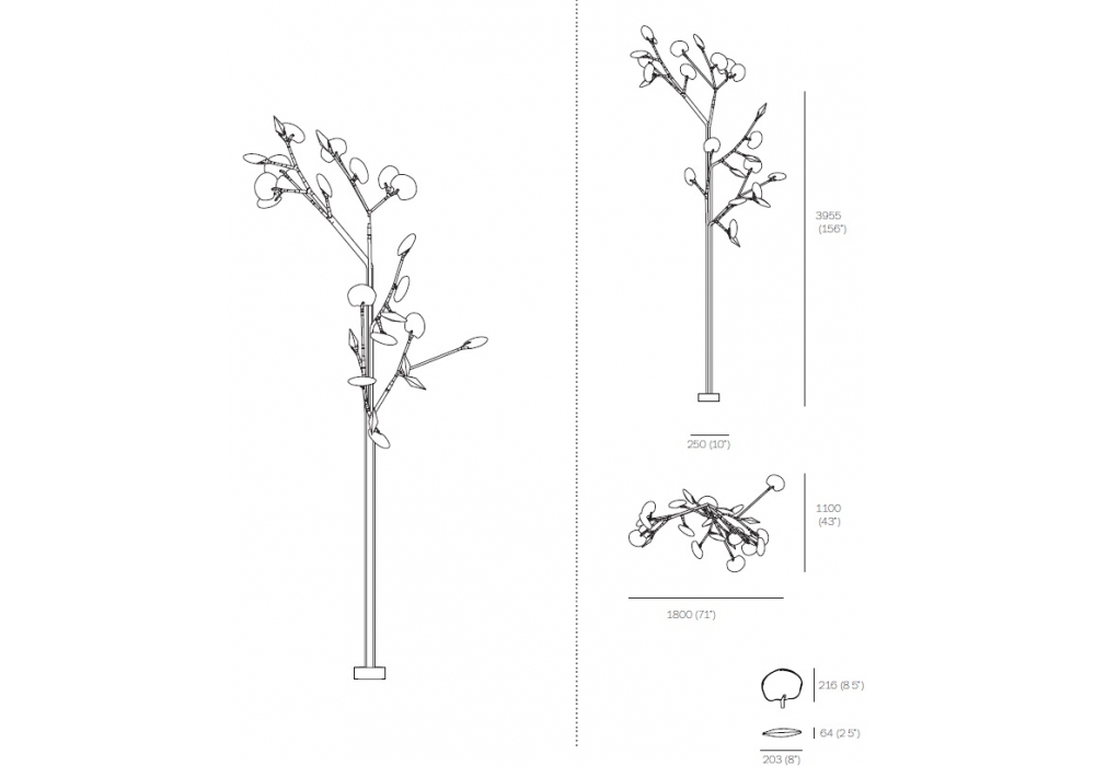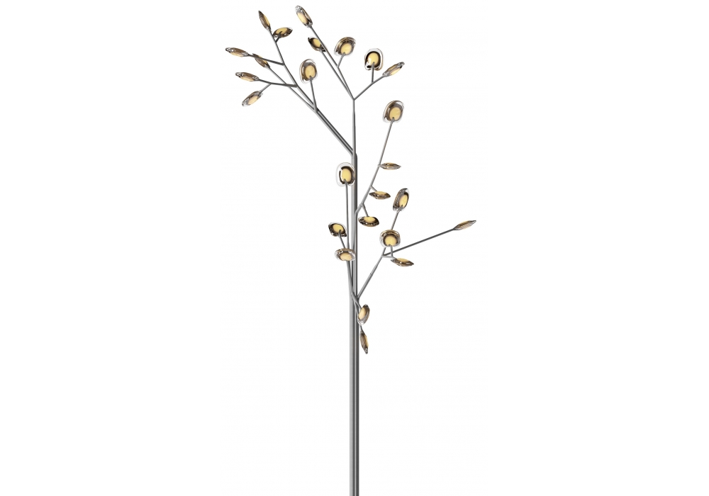 16.25 Elm de la serie 16 diseñada por Omer Arbel para Bocci es una lámpara de exterior. Una instalación de árbol con quince difusores, estructura modular de acero inoxidable sobre la que se injertan ramas que reproducen el aspecto del olmo. El tronco tiene una altura de 4,5 metros, 7 ramas y 25 hojas. Las hojas están disponibles en 4 acabados diferentes.