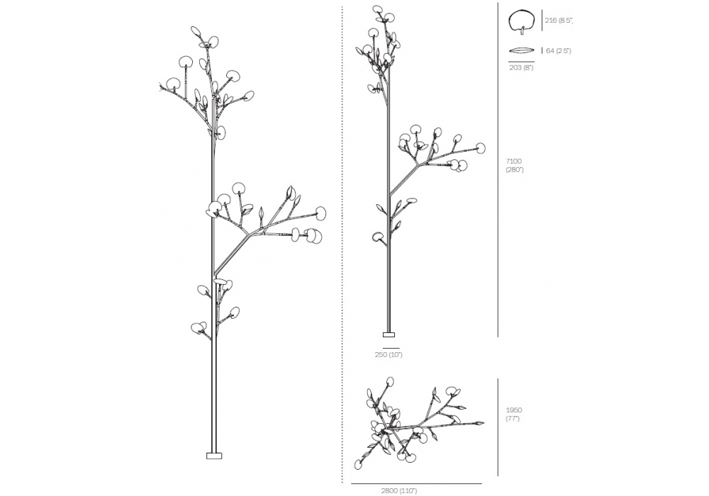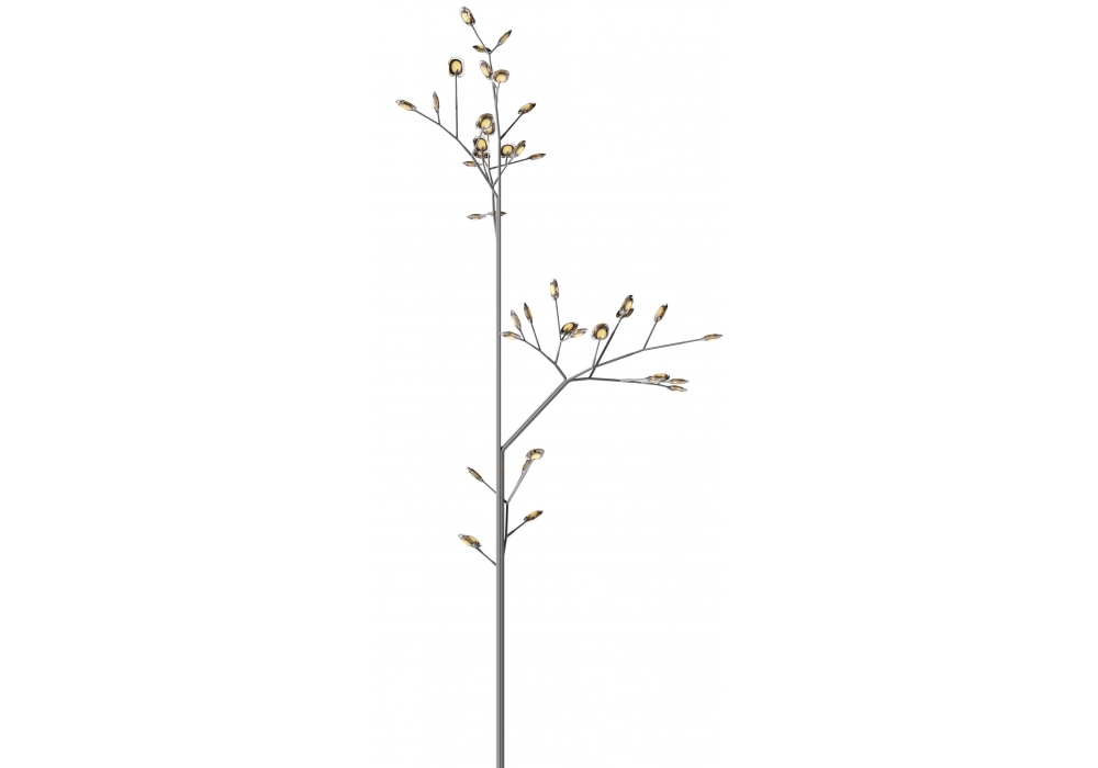 16.40 Birke der 16 Serie von Omer Arbel für Bocci entworfen, ist eine Außenleuchte. Eine Bauminstallation mit vierzig Diffusoren, eine modulare Struktur aus Edelstahl, auf die Äste gepfropft sind, die das Aussehen von Birke reproduzieren. Der Stamm hat eine Höhe von 7,1 Metern, 7 Äste und 40 Blätter. Die Blätter sind in 4 verschiedenen Ausführungen erhältlich.