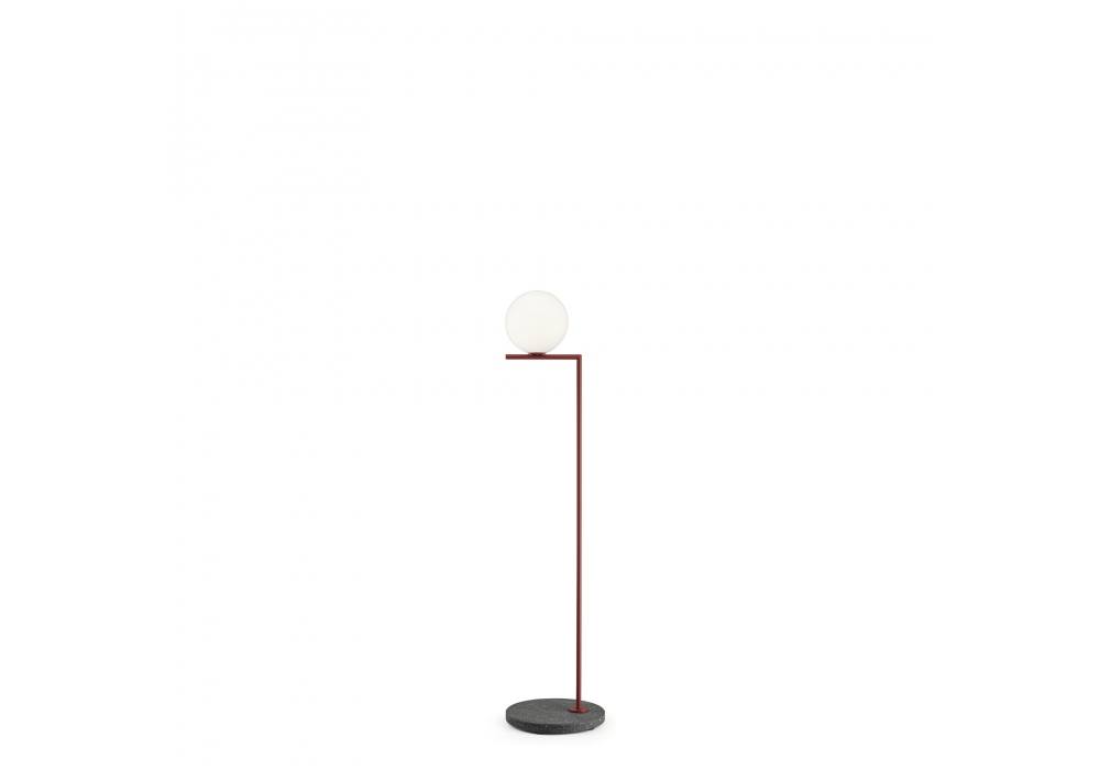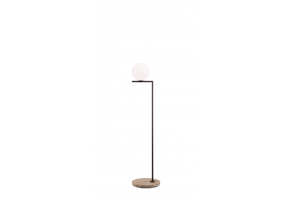 IC F1 diseñada por Michael Anastassiades para Flos es una lámpara de pie para exterior con base circular de mármol o piedra y vástago vertical de acero inoxidable. Fuente de luz no incluida. Interruptor de pie con regulación de intensidad luminosa IP65 retroiluminado a lo largo del cable que garantiza el encendido/apagado y una regulación del flujo luminoso del 30 al 100 % (con bombilla LED regulable).