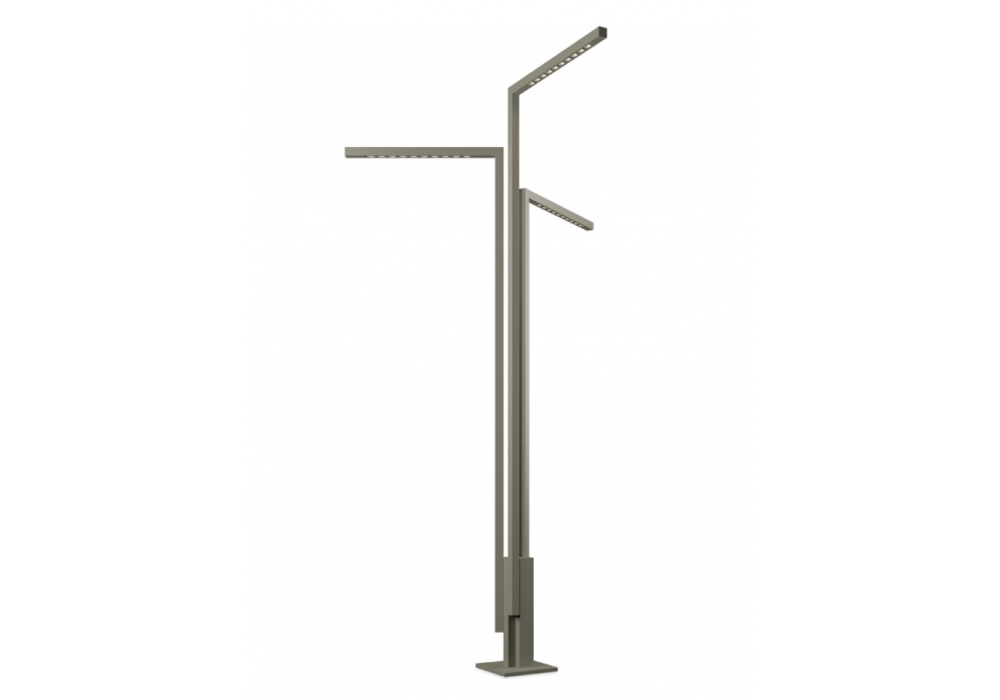 Palo Alto diseñada por Xuclà para Vibia es una lámpara de pie de exterior de estilo minimalista estructurada por uno o más pequeños cuadrados en acero curvado y pintado. El difusor está fabricado en policarbonato y protege las fuentes de luz LED. Palo Alto está disponible en diferentes modelos, acabados y tonalidades de fuentes de luz.