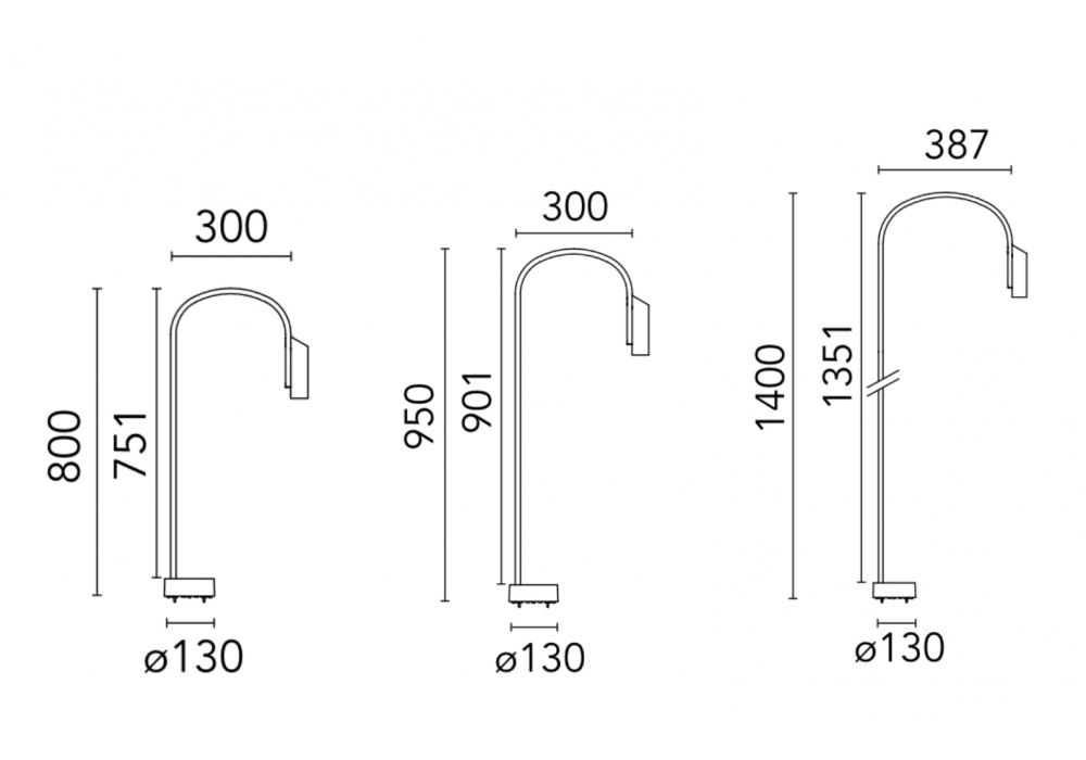 | Dimensiones | Ø 13 x H 80 cm; Ø 13 x H 95 cm; Ø 13 x H 140 cm. |