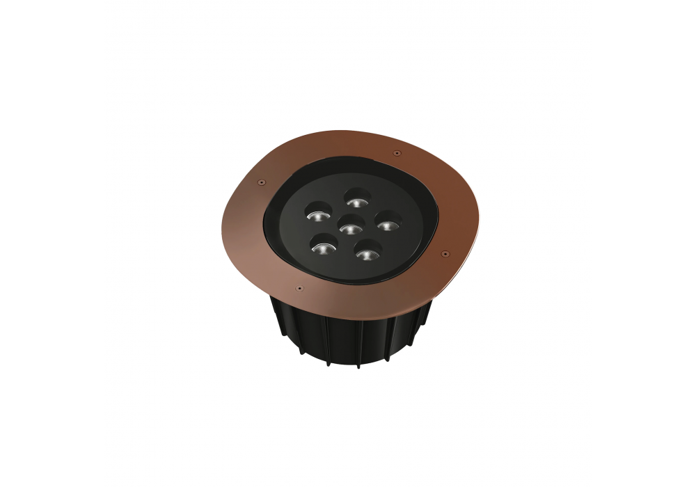 A-Round diseñada por Piero Lissoni para Flos es una lámpara de pie empotrable de exterior con estructura en acero inoxidable y aluminio inyectado disponible en dos medidas. Cubierta de vidrio templado serigrafiado sostenida por un anillo de acero inoxidable. La fuente de luz es LED con diferentes gradaciones de luz.