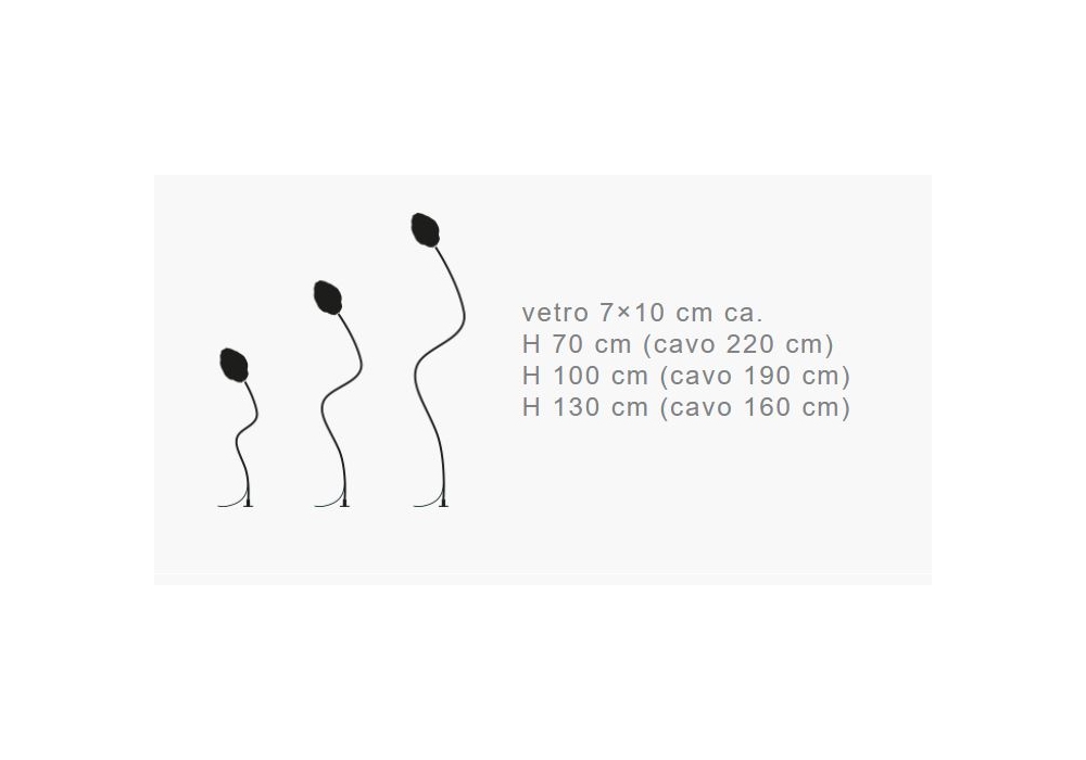 More F diseñada por Enzo Catellani para Catellani & Smith es una lámpara de pie LED para exterior, con tija en metal galvanizado y difusor en cristal transparente, verde o ámbar. Están disponibles varios accesorios de soporte, para sistema de caja de gel y para conectores rápidos.