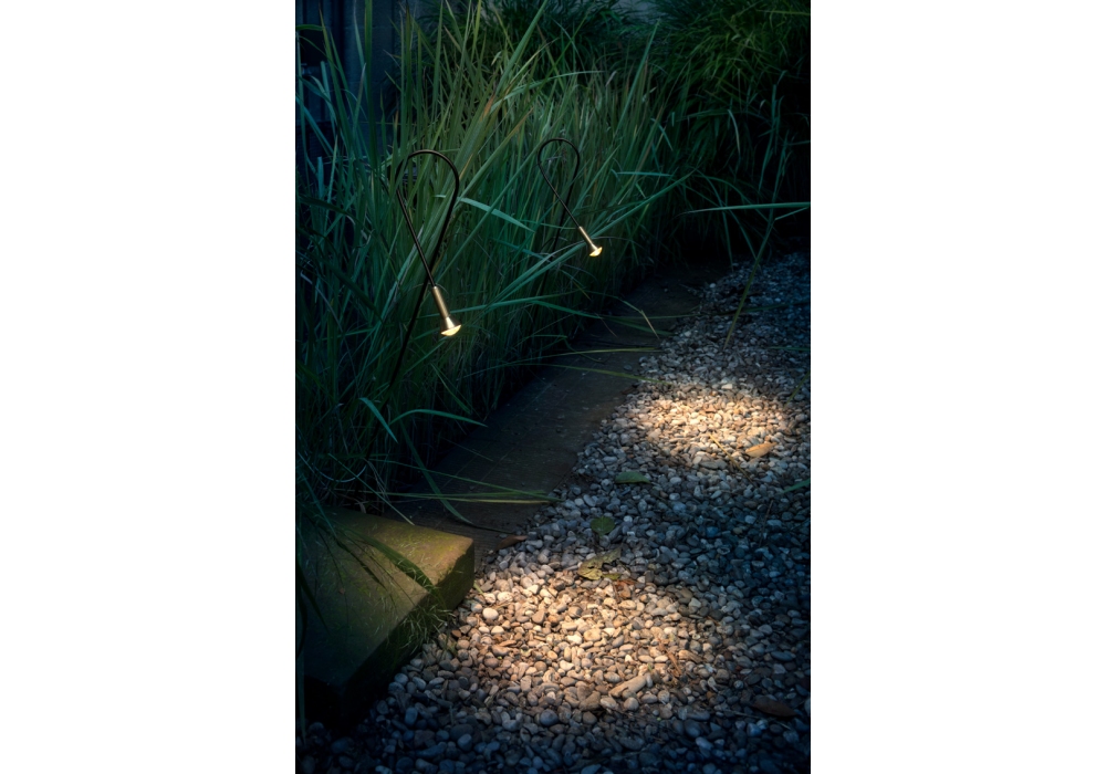 Syphaduepassi diseñada por Enzo Catellani para Catellani & Smith es una lámpara de pie LED con pie y detalles en latón natural y lente de vidrio. La lámpara está diseñada para espacios exteriores, por lo que es posible añadir accesorios para el sistema de caja de gel y conectores rápidos.