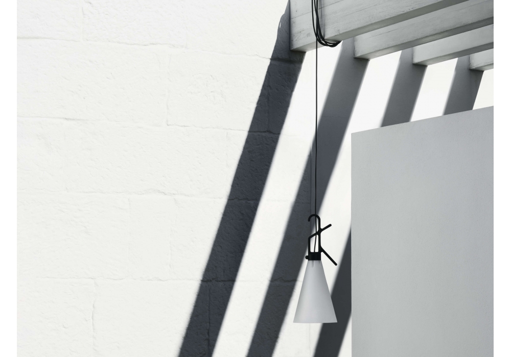 Mayday diseñada por Konstantin Grcic para Flos es una luminaria multiusos para exteriores. Difusor cónico de polipropileno opalino moldeado por inyección. Gancho/asa, que también funciona como enrollador de cable, de polipropileno inyectado con relleno de talco. Interruptor pulsador en la asa. Tapa del interruptor de elastómero inyectado disponible en diferentes acabados. Bombilla no incluida.