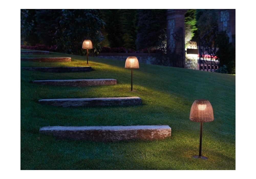 Atticus Bollard von Joana Bover für Bover entworfen ist eine Stehleuchte für den Außenbereich mit eingelassenem rundem Sockel und vertikalem Stab aus lackiertem Edelstahl. Der Lampenschirm ist aus einem Kunstfasergeflecht mit einem Polyethylen-Diffusor strukturiert und schirmt eine dimmbare Triac-LED-Lichtquelle ab. Atticus Poller ist in verschiedenen Ausführungen und Modellen erhältlich.