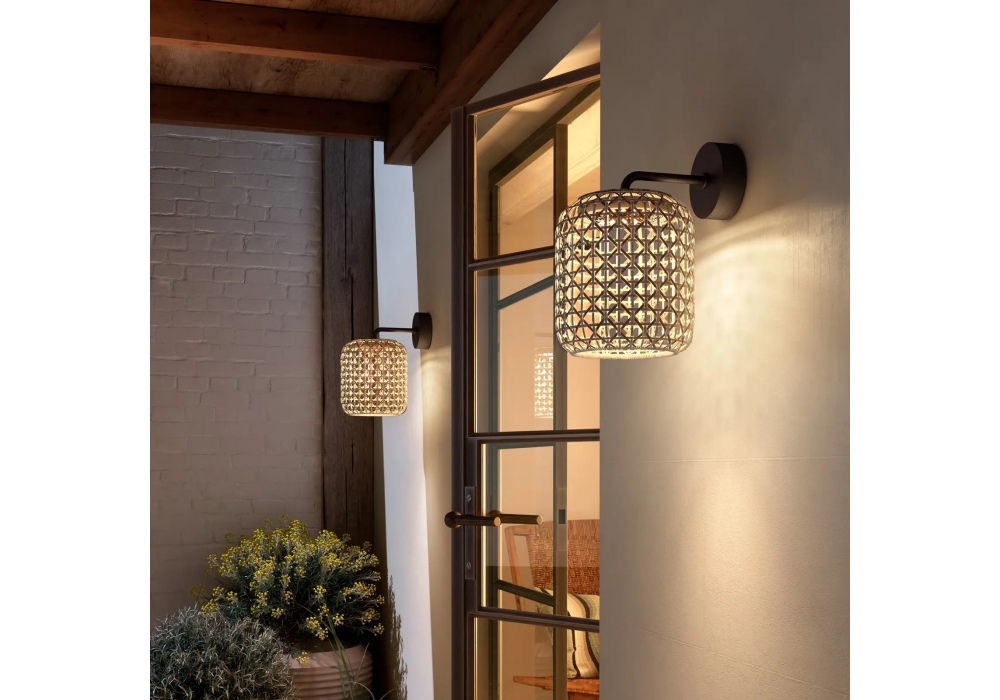 Nans diseñada por Joana Bover para Bover es un aplique de exterior con soporte y estructura portante en acero inoxidable y aluminio pintado marrón grafito. La pantalla tiene forma redondeada en fibra sintética con difusor de policarbonato y apantalla una fuente de luz LED con sistema dimmer Triac. Nans está disponible en diferentes acabados y modelos.