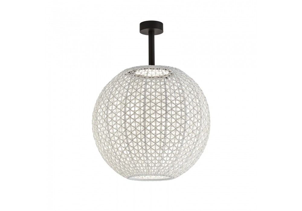 Nans Sphere diseñada por Joana Bover para Bover es una lámpara de techo de exterior con estructura portante en acero inoxidable y aluminio pintado en marrón grafito. La pantalla tiene forma esférica en fibra sintética con difusor de policarbonato y apantalla una fuente de luz LED con sistema dimmer Triac. Nans Sphere está disponible en diferentes acabados y modelos.