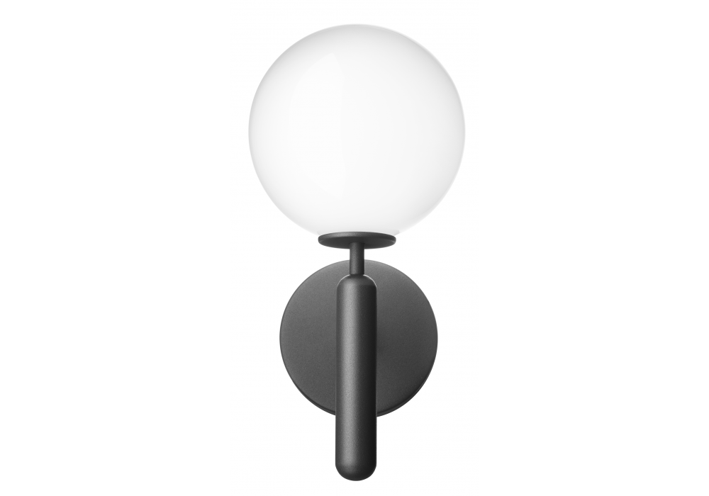 Miira Outdoor diseñada por Sofie Refer para Nuura es una lámpara de pared de exterior con estructura de metal trabajado y difusor de vidrio opalino soplado o transparente con relieve.