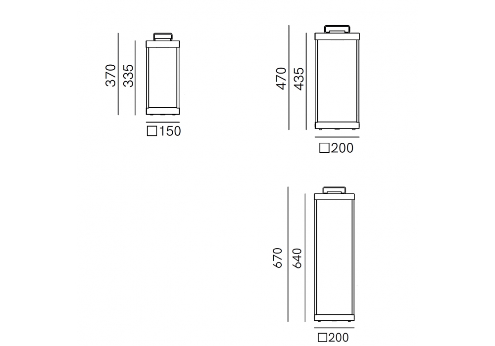 | Dimensiones | 15 x 15 x H 37 cm; 20 x 20 x H 47 cm; 20 x 20 x H 67 cm. |