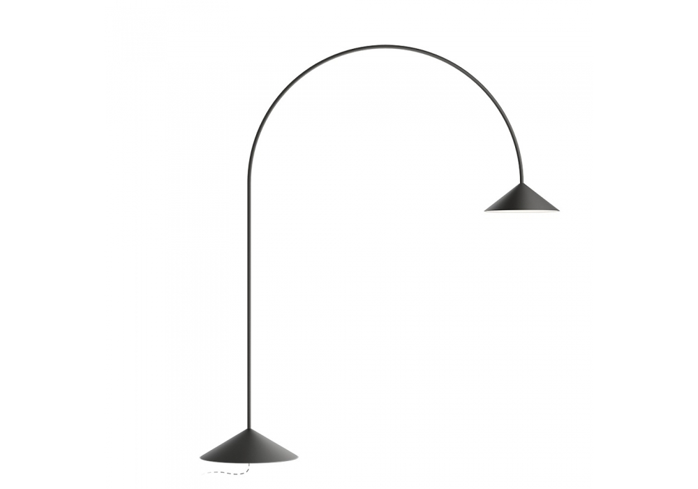 Out Bolt Down diseñada por Víctor Carrasco para Vibia es una lámpara de pie de exterior con base circular y varilla vertical curvada en acero inoxidable pintado. La pantalla es de acero cónico y adopta un difusor de polietileno con fuente de luz LED. Out Bolt Down está disponible en diferentes acabados y versiones de control de luz.
