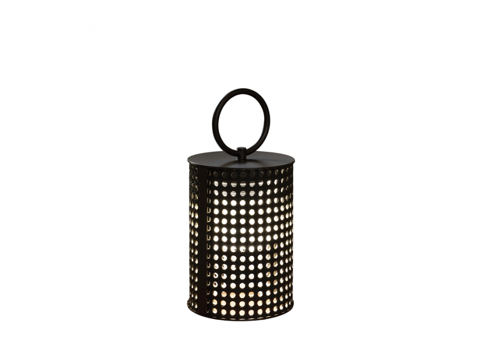 Clara Nomad diseñada por Chiara Caberlon para Contardi es una lámpara de exterior con difusor de resina con efecto paja vienesa y estructura de color crema o bronce. Es resistente a la intemperie y a los rayos UV. Equipada con un módulo LED, ofrece hasta 10 horas de autonomía. Se carga en 6-8 horas mediante cable USB-C (incluido). Fuente de alimentación no incluida.