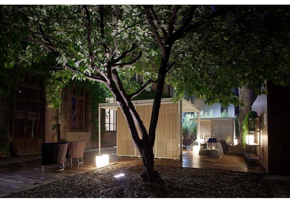 Lenta diseñada y producida por Bestetti Associati & Davide Groppi es una lámpara de pie para exteriores con estructura portante de metal pintado. El difusor es cilíndrico de policarbonato y apantalla una fuente de luz con casquillo E27 de tipo LED.