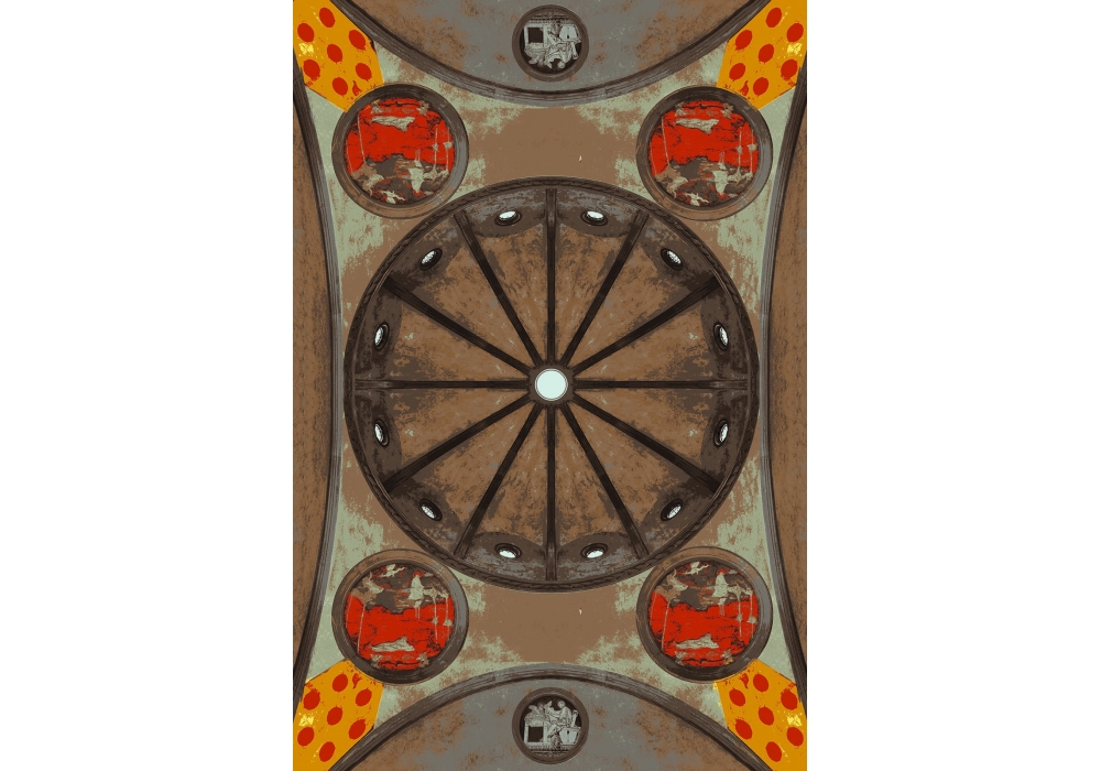 Firenze designed by Sebastiano Tosi and Lapo Ciatti for Opinion Ciatti is a collection of tufted velours carpets, rectangular and round shapes, emotional architectonical images printed with 16 colors. For domestic and contract use, colourmatched borders, fire resistant, good sound absorption, slip-resistant, Luxury class Lc5.