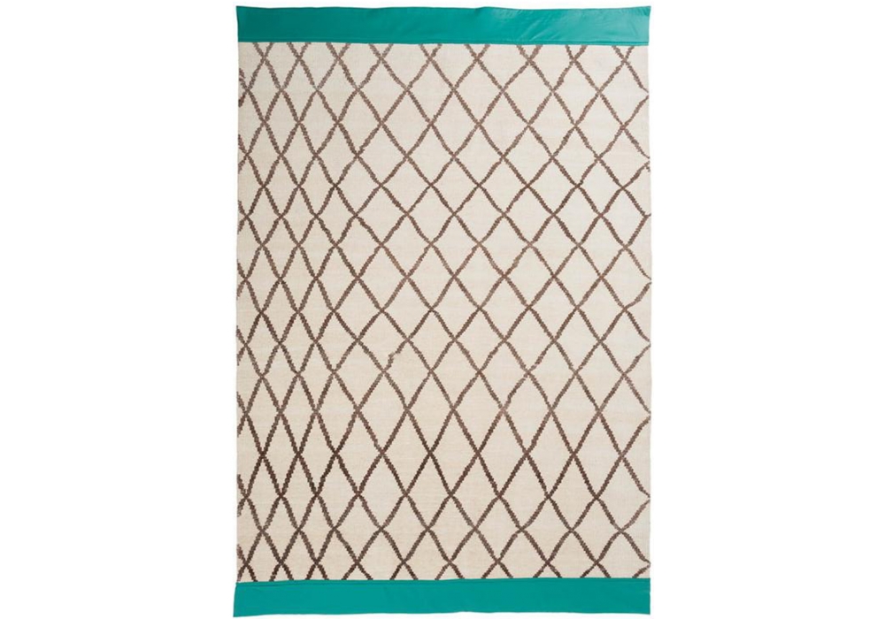 Veil diseñada por Sebastian Herkner para Nodus es una alfombra para interior. Realizado en lana y cuero, anudado a mano. Disponible en un solo tamaño y acabado.