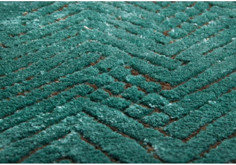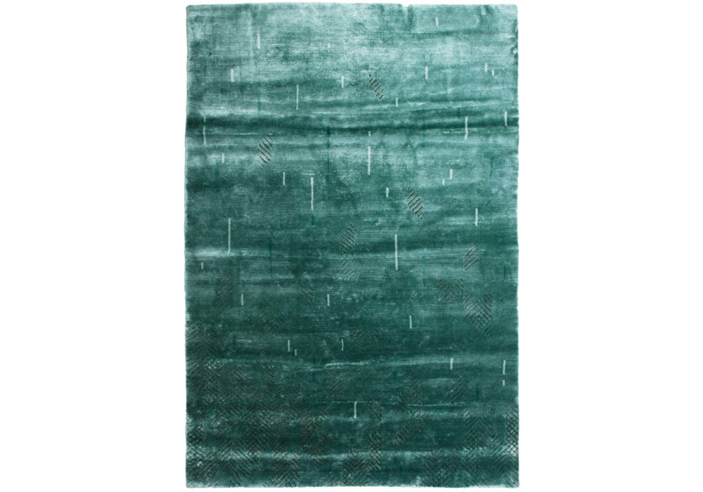 Verdiazul diseñada por Liliana Ovalle para Nodus es una alfombra para interior. Realizado en seda de platano, anudado a mano. Disponible en un solo tamaño y acabado.