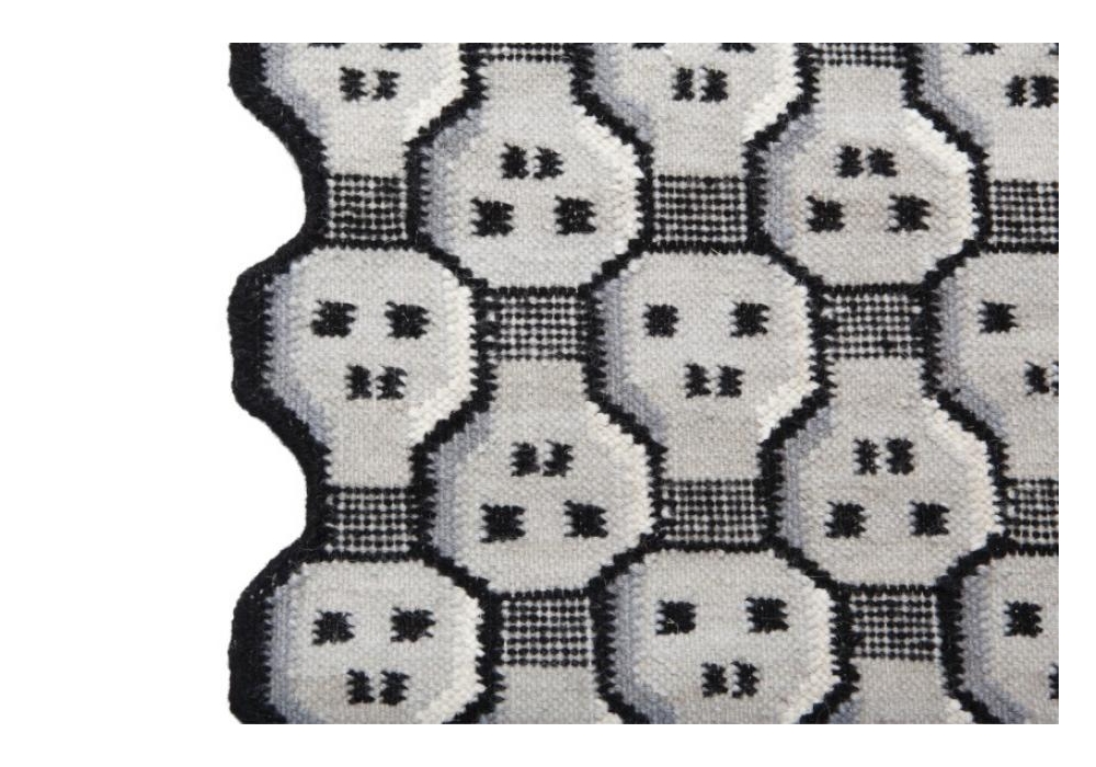 Knock Out diseñada por Giulio Iacchetti para Nodus es una alfombra para interior. Realizado en lana, dhurrie alfombra, anudado a mano. Disponible en diferentes dimensiones.