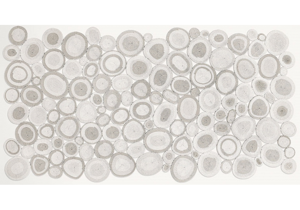 Ellissi diseñada por CRS Paola Lenti es una hermosa alfombra para ambientes interiores y exteriores creado con elementos realizados en cuerdas de uno o dos colores. Los cordones son conformados y cosidos a mano para formar módulos de decoración redondos y ovales. Estos módulos se unen entonces libremente para formar la superficie de la alfombra.