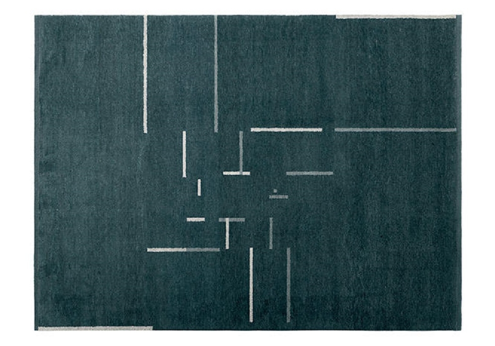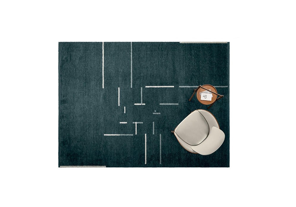 Dizzy diseñada por Max Huber para Poltrona Frau es una alfombra completamente anudada a mano en telares de madera. El patrón consiste en una serie de líneas discontinuas de diferentes longitudes en dos colores diferentes y colocadas tanto horizontal como verticalmente. Composición: 100% lana natural cardada y hilada a mano.