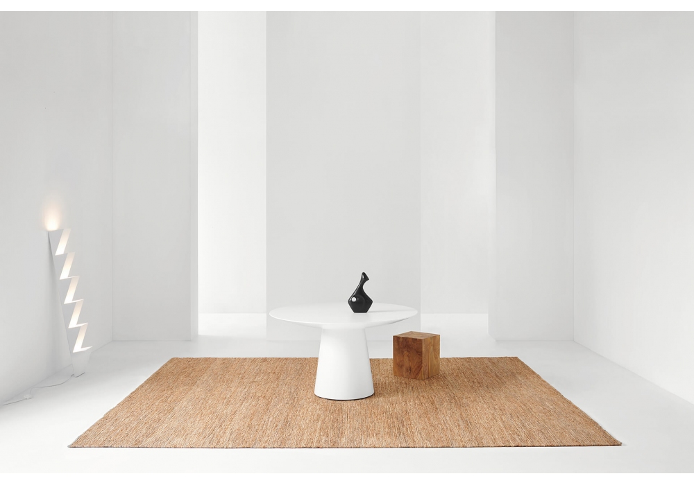 Saya diseñada por Amini es una alfombra anudada a mano con técnica sumak, 100% yute.