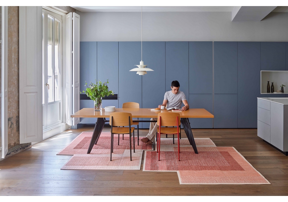 Canevas Geo diseñada por Charlotte Lancelot para Gan es una alfombra 100% lana virgen. Disponible en diferentes colores.