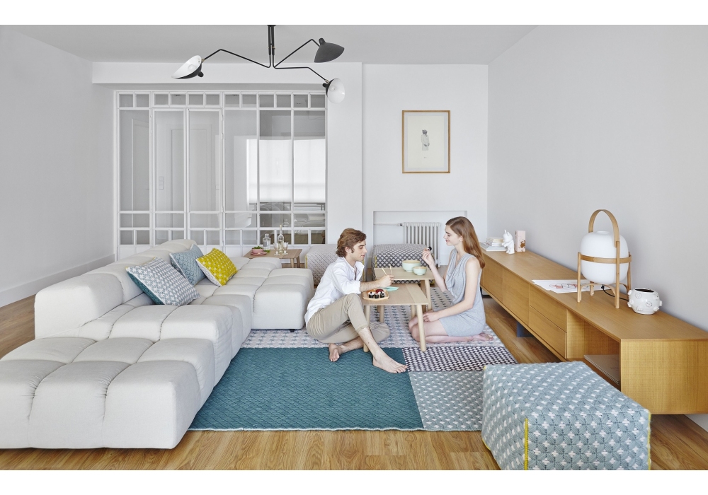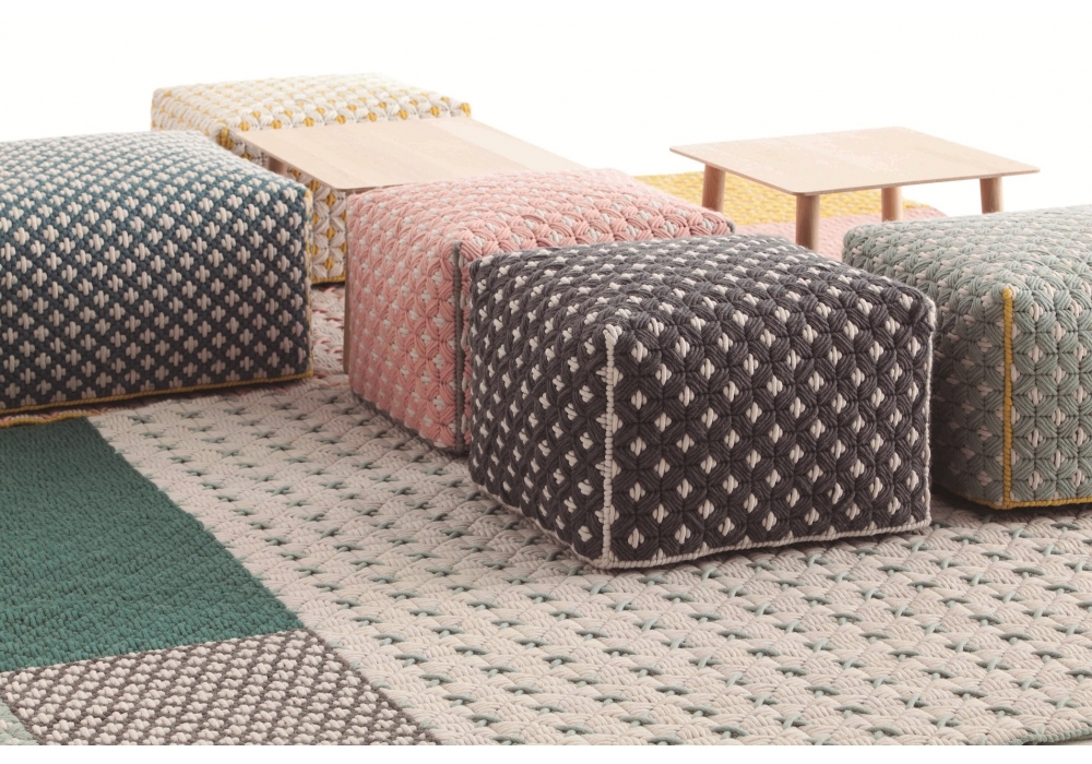 Silaï diseñada por Charlotte Lancelot para Gan es una alfombra 100% lana virgen con retícula interior PVC. Disponible en varias secuencias de colores establecidas.