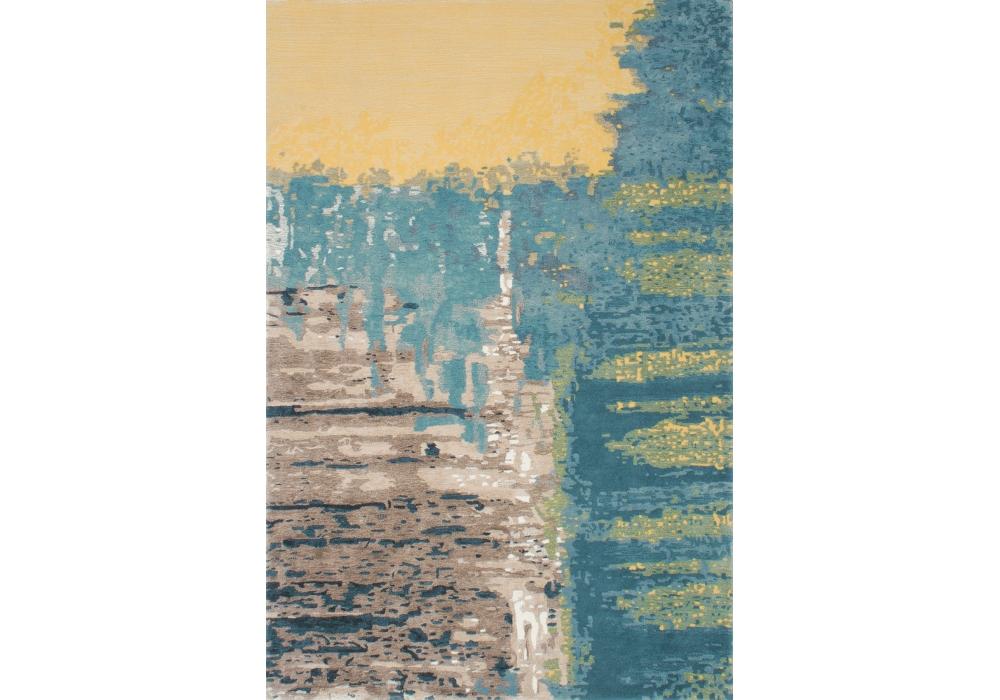 Estampe diseñada por Serge Lesage es una alfombra tejida a mano de lana de Nueva Zelanda y viscosa.