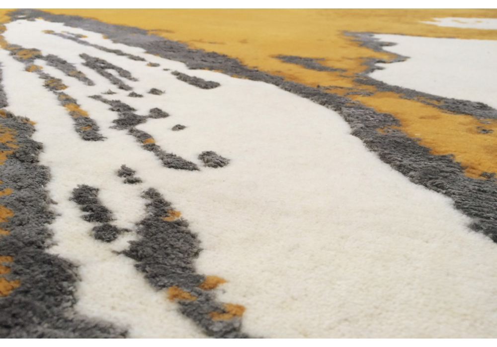 Run diseñada por Serge Lesage es una alfombra anudada a mano hecha de viscosa y lana de Nueva Zelanda. Está disponible en diferentes tamaños.