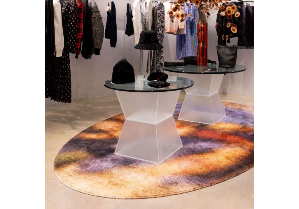Blur Oval diseñada por Stegano Giovannoni para Qeeboo es una alfombra de forma cuadrangular en poliéster y poliamida antideslizante con varios tonos de color.