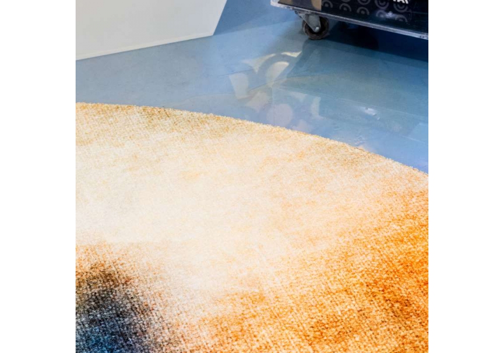 Blur Round diseñada por Stegano Giovannoni para Qeeboo es una alfombra de forma cuadrangular en poliéster y poliamida antideslizante con varios tonos de color.