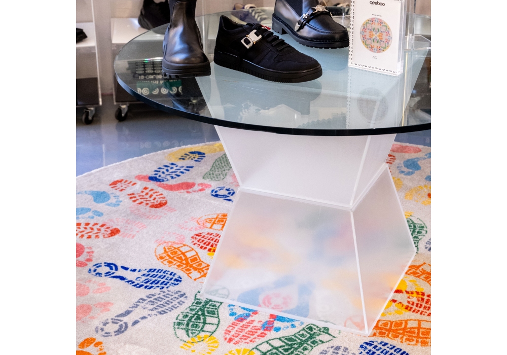 Let's Dance Human Trances Light diseñada por Nynke Tynagel para Qeeboo es una alfombra circular en poliéster y poliamida antideslizante con varios tonos de color.