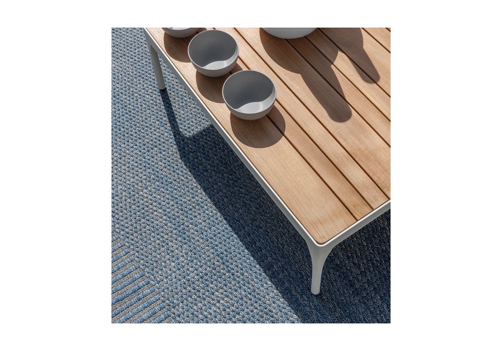 Goa producida y firmada por Ethimo es una alfombra de exterior totalmente hecha a mano en tejido de propileno disponible en diferentes acabados.