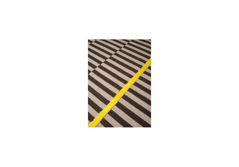 Anni diseñada por Studiopepe para Tacchini es una alfombra disponible en diferentes tamaños, con varias composiciones decorativas. Está disponible con acabado Bauhaus, rayado o de cuadros, claro u oscuro. La alfombra está hecha de lana natural, anudada a mano en Nepal, con detalles en color amarillo o azul.
