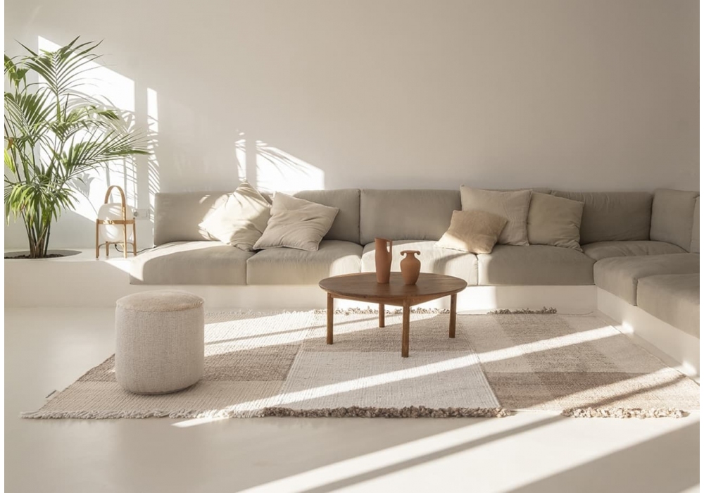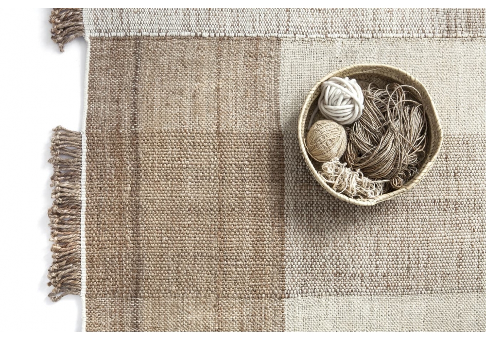 Tres Vegetal diseñada por Nani Marquina y Elisa Padrón para Nanimarquina es una alfombra enmarcada a mano realizada en 65% Yute, 23% fieltro de lana y 12% lana de Nueva Zelanda. Disponible en diferentes dimensiones.