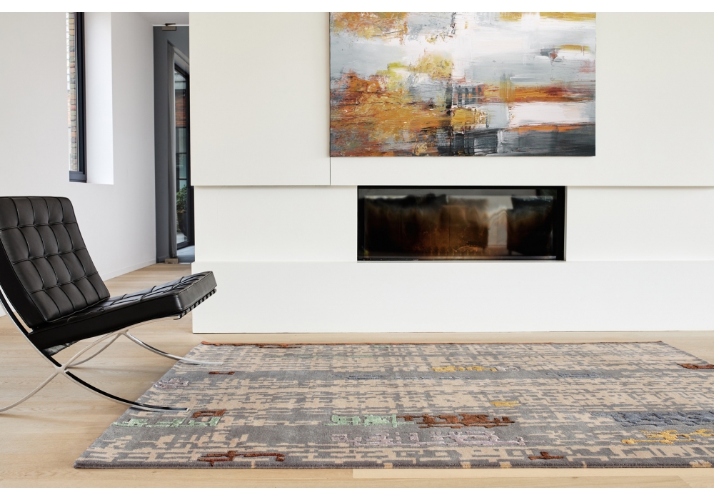 Net diseñada por Serge Lesage es una alfombra con mechones hechos a mano de viscosa y lana de Nueva Zelanda. Está disponible en diferentes tamaños.