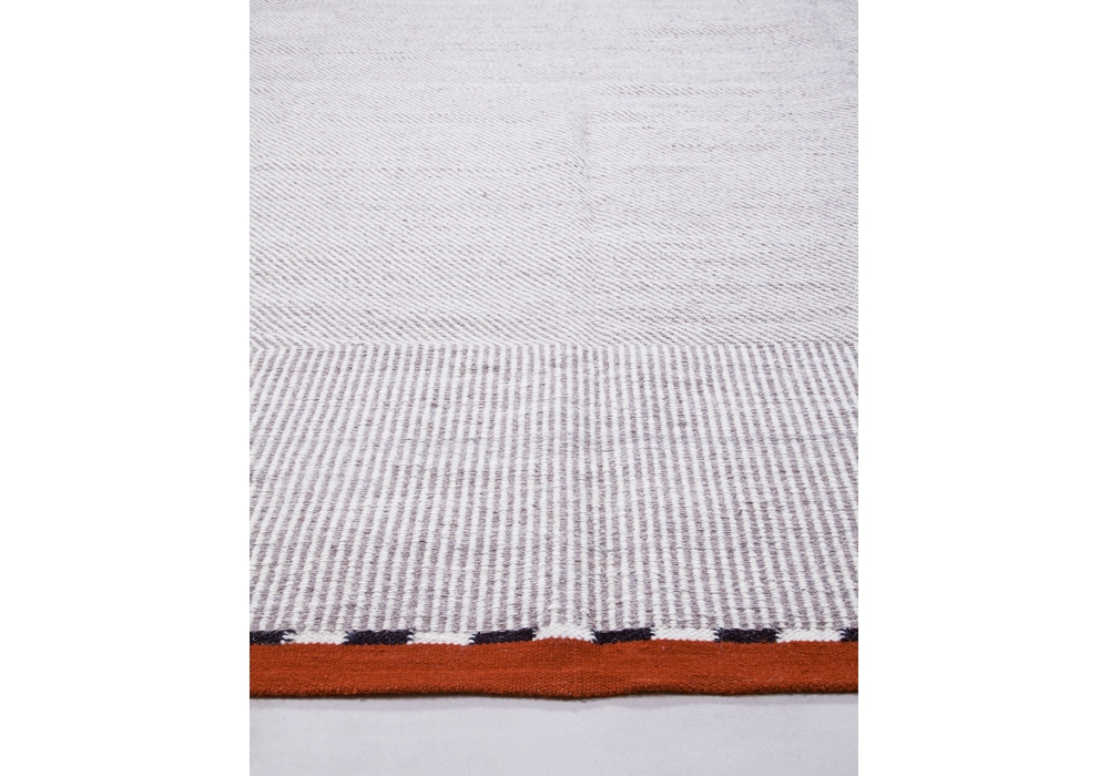 Khilim diseñada por AltherrDesilePark para Amini es una alfombra realizada en 100% lana; Tejido a mano en lana suave y resistente apta para zonas de alto tránsito. Disponible en diferentes acabados.