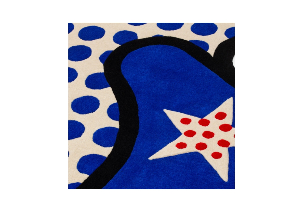 Cielo diseñada por Archizoom Associati para Poltronova es una alfombra realizada en lana tupida a mano caracterizada por una explosión de colores primarios y formas geométricas sencillas atravesadas por motivos decorativos. Inspirada en el estampado diseñado por el grupo Archizoom en 1967 en busca de un ácido contraste entre la decoración floral y liberty y la experimentación que se estaba produciendo en el Pop Art en esos años.
